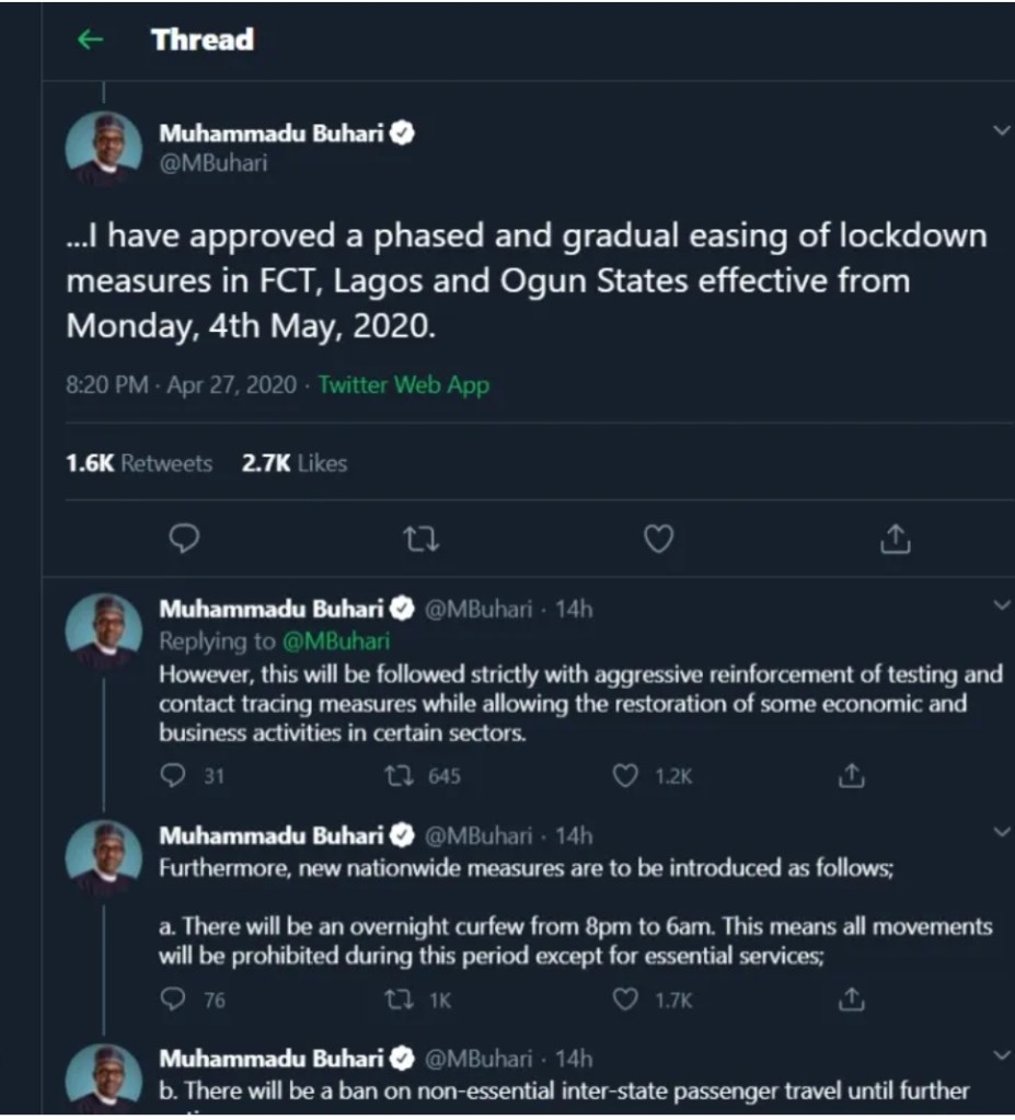“The same people demanding the ease of lockdown may come back to criticize and condemn the action of the government when things go wrong.